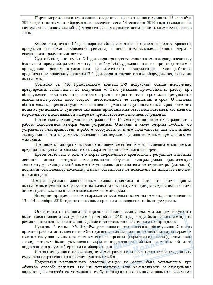 - Причинно-следственная связь. Из-за неисправности холодильной камеры температура хранения не соответствовала норме, в результате чего мороженое растаяло. Это подтверждено актом о порче от 15 сентября 2010 года, составленным в присутствии мастера ответчика, и актом о списании товара от 27 сентября 2010 года.