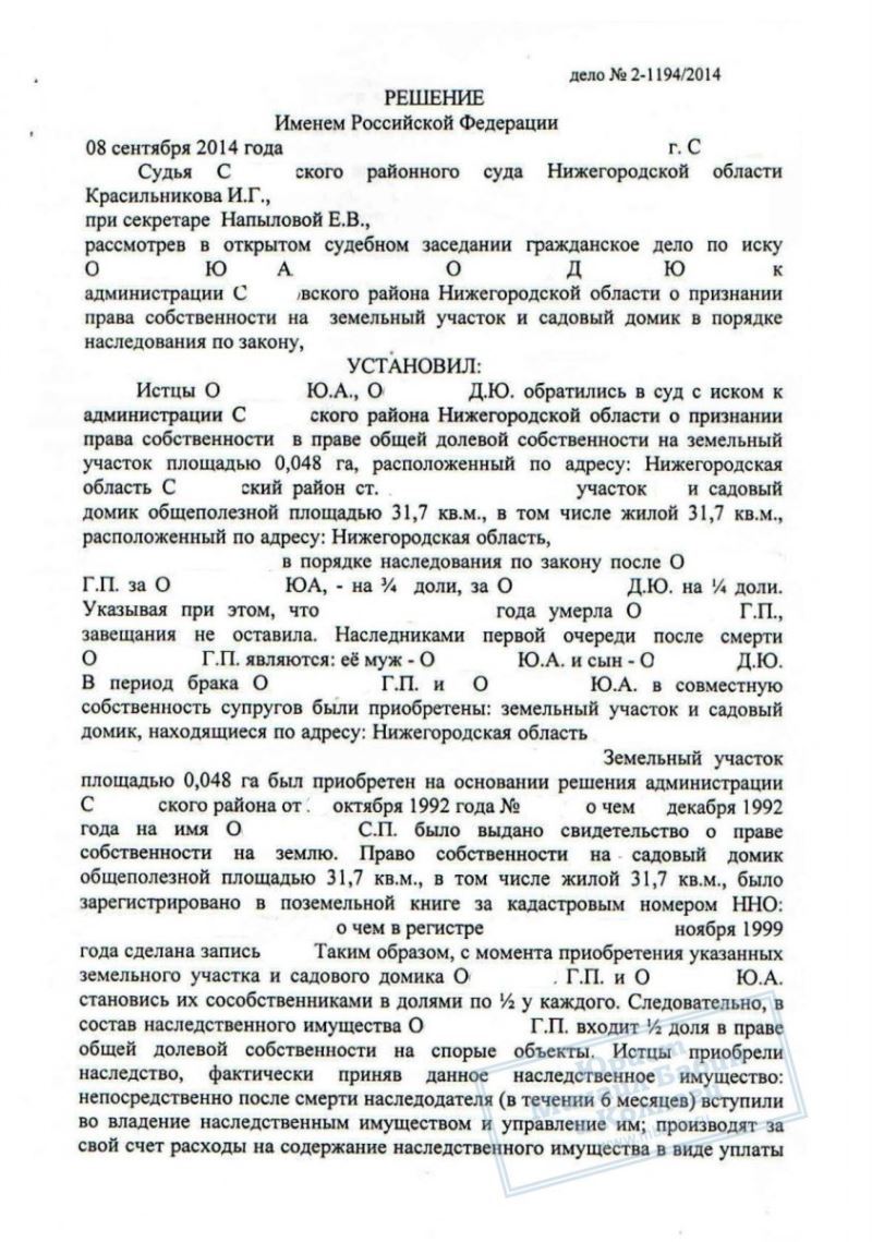 Нотариус отказал в оформлении наследства, но юрист нашей коллегии смог отстоять в суде права О.Ю и О.Д. на их собственность.