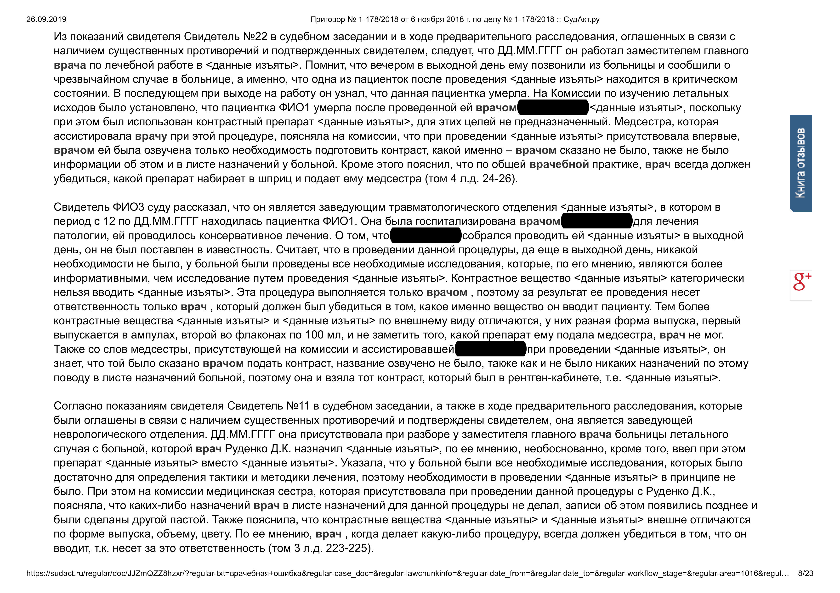 Смерть пациентки из-за врачебной ошибки: уголовная ответственность врача